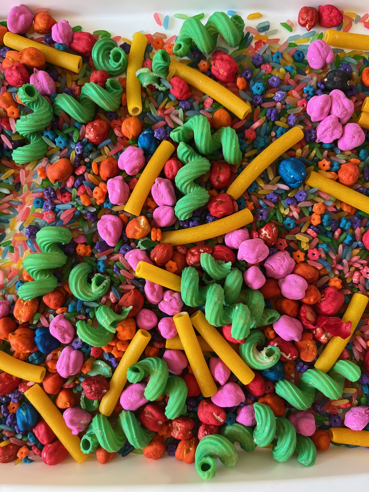 Our Boxi Sensory Mixes are colourful, textured play bases designed to spark imagination and encourage hands-on learning. Each mix is carefully curated using materials like rice, pasta, and chickpeas, creating a rich sensory experience that children love to scoop, pour, sort and explore.