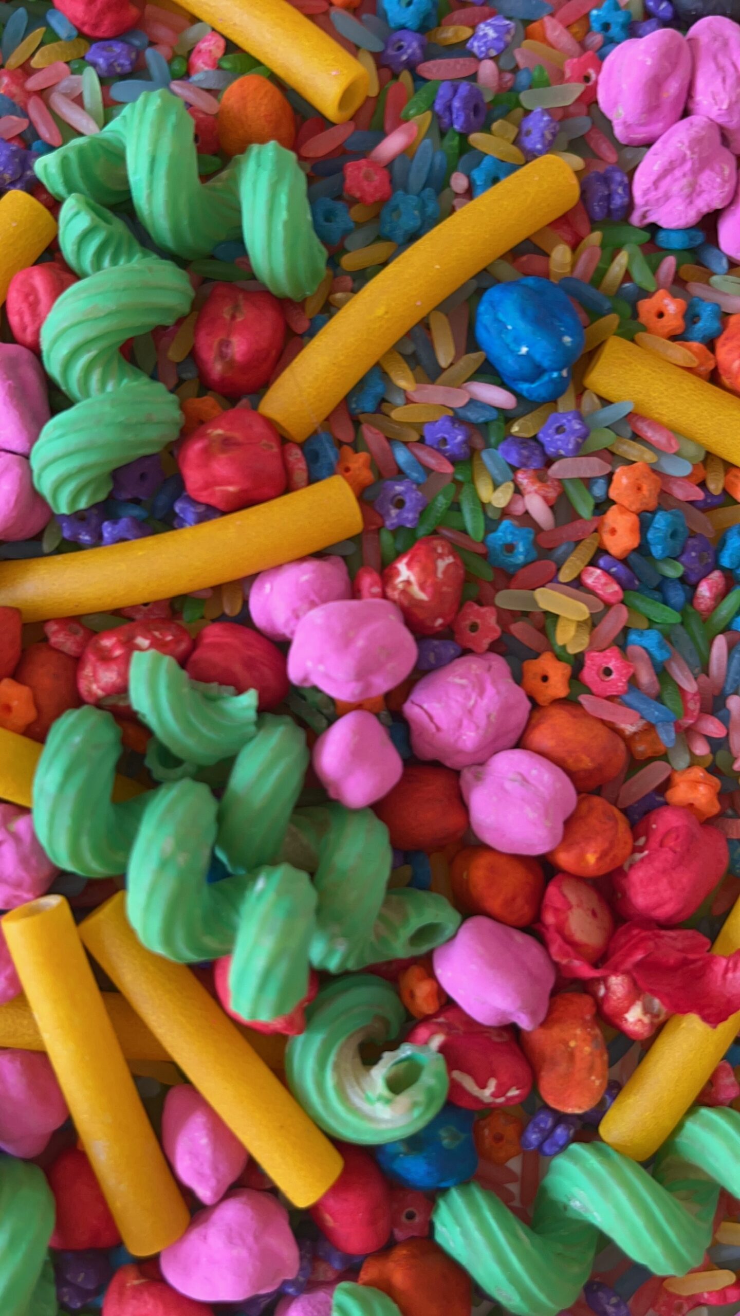 Boxi Sensory Mixes are colourful, textured play bases designed for hands-on, imaginative play. Made with materials like rice, pasta and chickpeas, they encourage children to scoop, pour, sort and explore while developing fine motor skills. Perfect for sensory bins and messy play. Ages 3+. Adult supervision required. 🧸✨